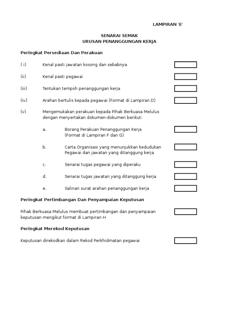 Salinan surat arahan penanggungan kerja Peringkat Pertimbangan Dan Penyampaian Keputusan. 5 contoh surat keterangan kerja dari perusahaan untuk berbagai keperluan mulai pekerjaan hinggan pendidikan yang baik dan benar. Lampiran B - Borang Permohonan Tanggung Kerja dalam format words.